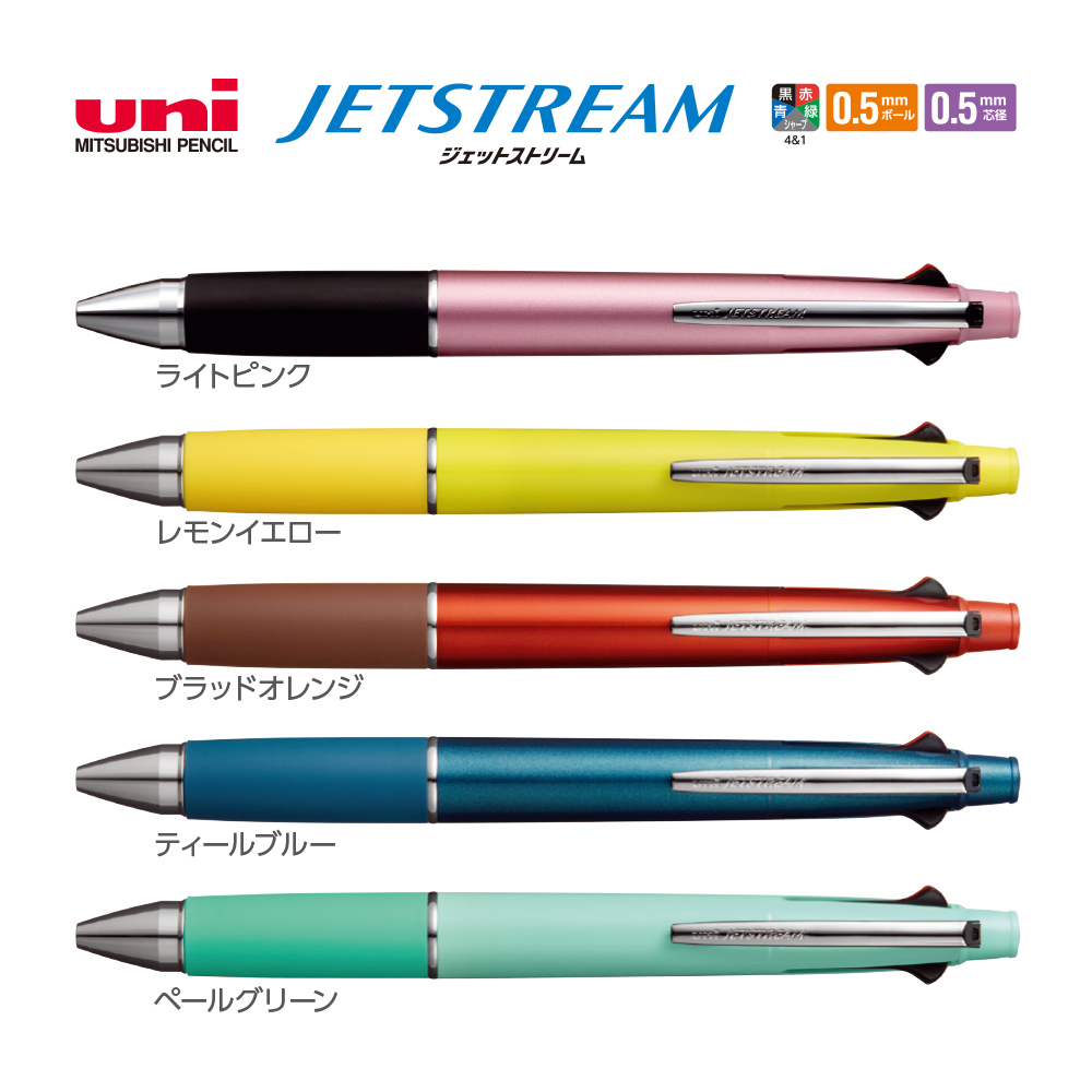 「ジェットストリームメタリックタイプ4&1 0.5mm【名入れ多機能ペン】」は、4色のボールペンとシャープペンが1本にまとまったアイテムです。