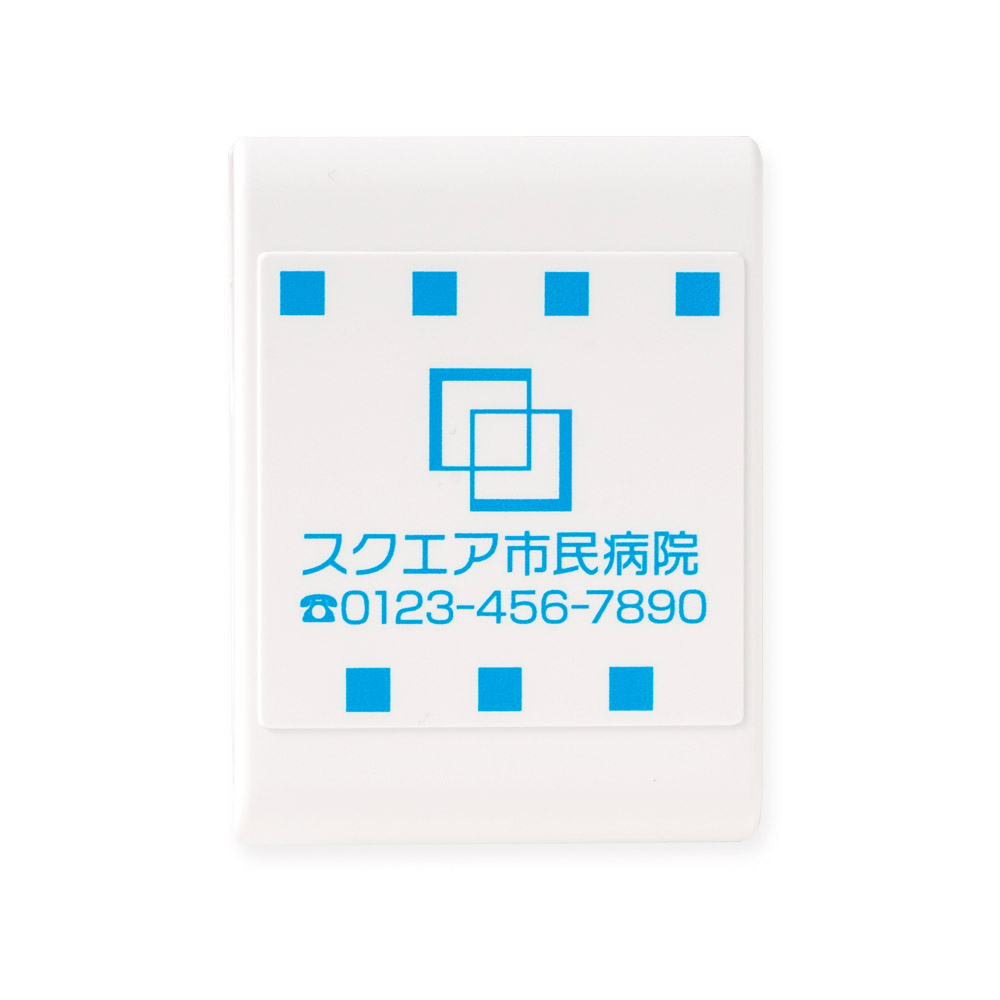 スタンダードな丸型タイプより個性的に仕上がる、クリップ仕様の角型マグネット。優れたグリップ力で、メモやチラシはもちろん、コード類までしっかり挟んでくれます。冷蔵庫などに貼ったときの存在感と、高い訴求力もポイントに。