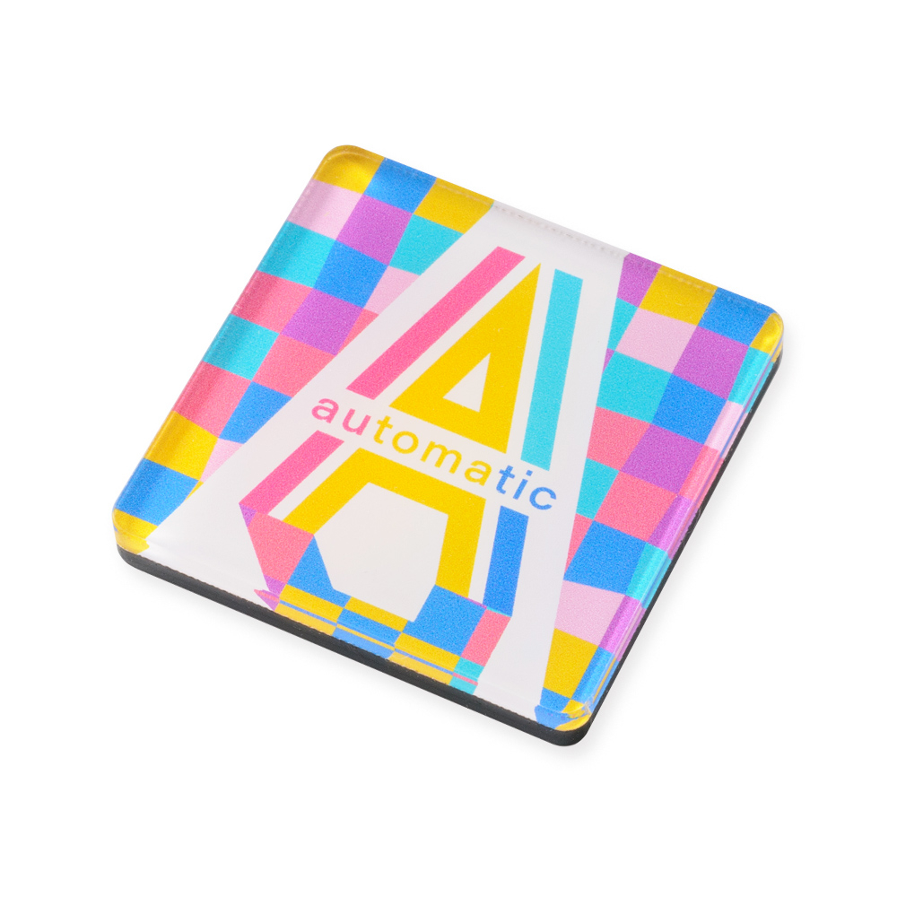 ほど良いサイズ感で使いやすい、スクエア型のマグネット。アクリルのツヤめきが美しく、白押さえで発色を高めたフルカラー印刷がロゴや社名を美しく引き立てます。イベントや営業時の配りやすさもポイントに。