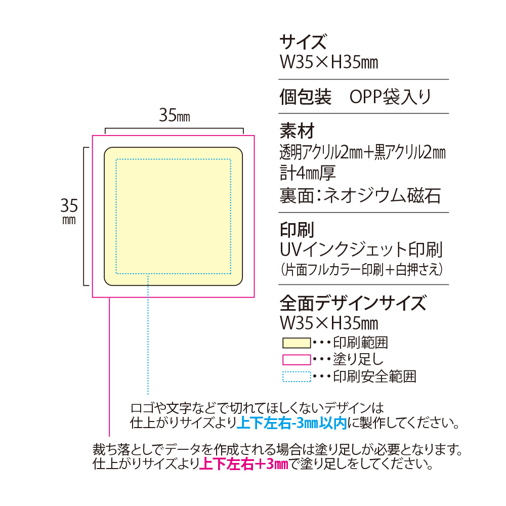 アクリルマグネット(四角タイプ)W35×H35mm |