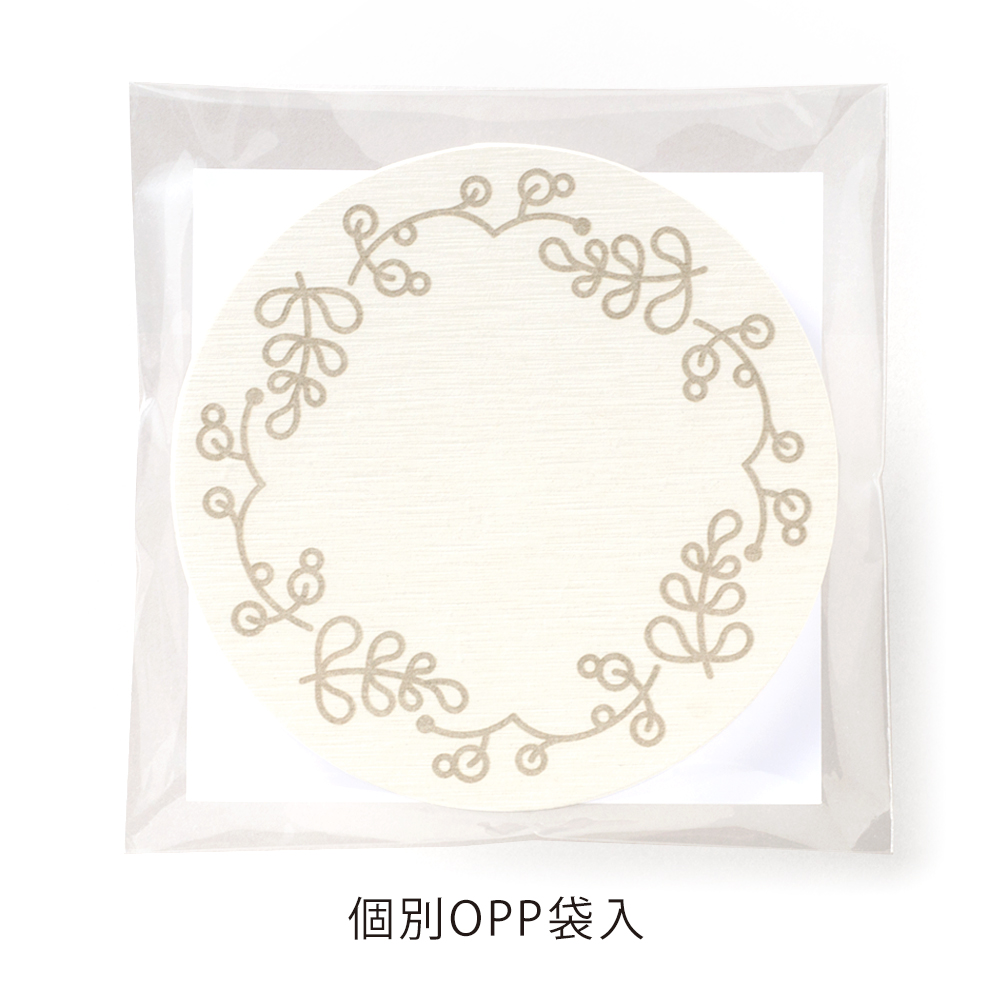 コースターとしての安定感や撥水性はもちろん、それぞれの素材に合った印刷方法をご提案。いずれのコースターも、清潔感のある個別OPP袋入りでお届けします。