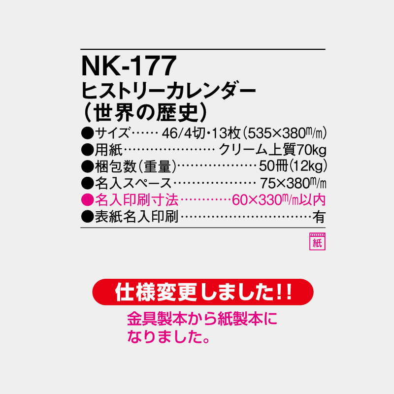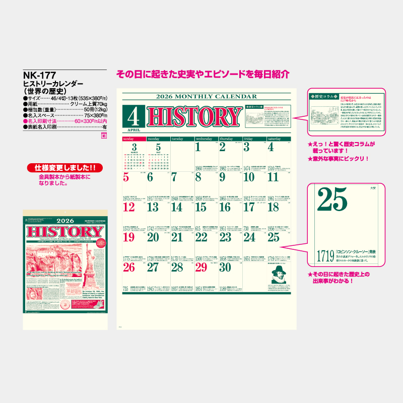 ヒストリーカレンダー(世界の歴史) 名入れ壁掛けカレンダー