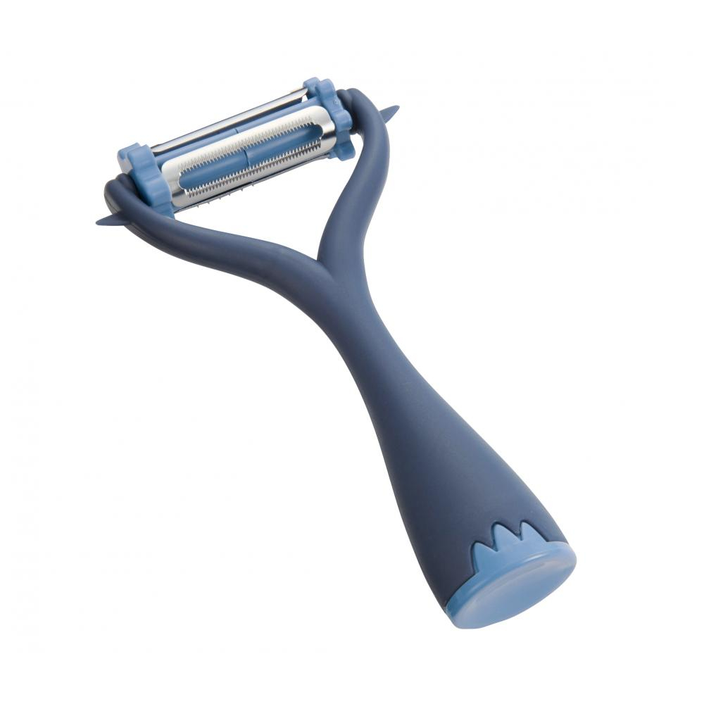 ホイールを回すだけで刃を切り替えられ、多彩な用途に使える多機能ピーラーです。