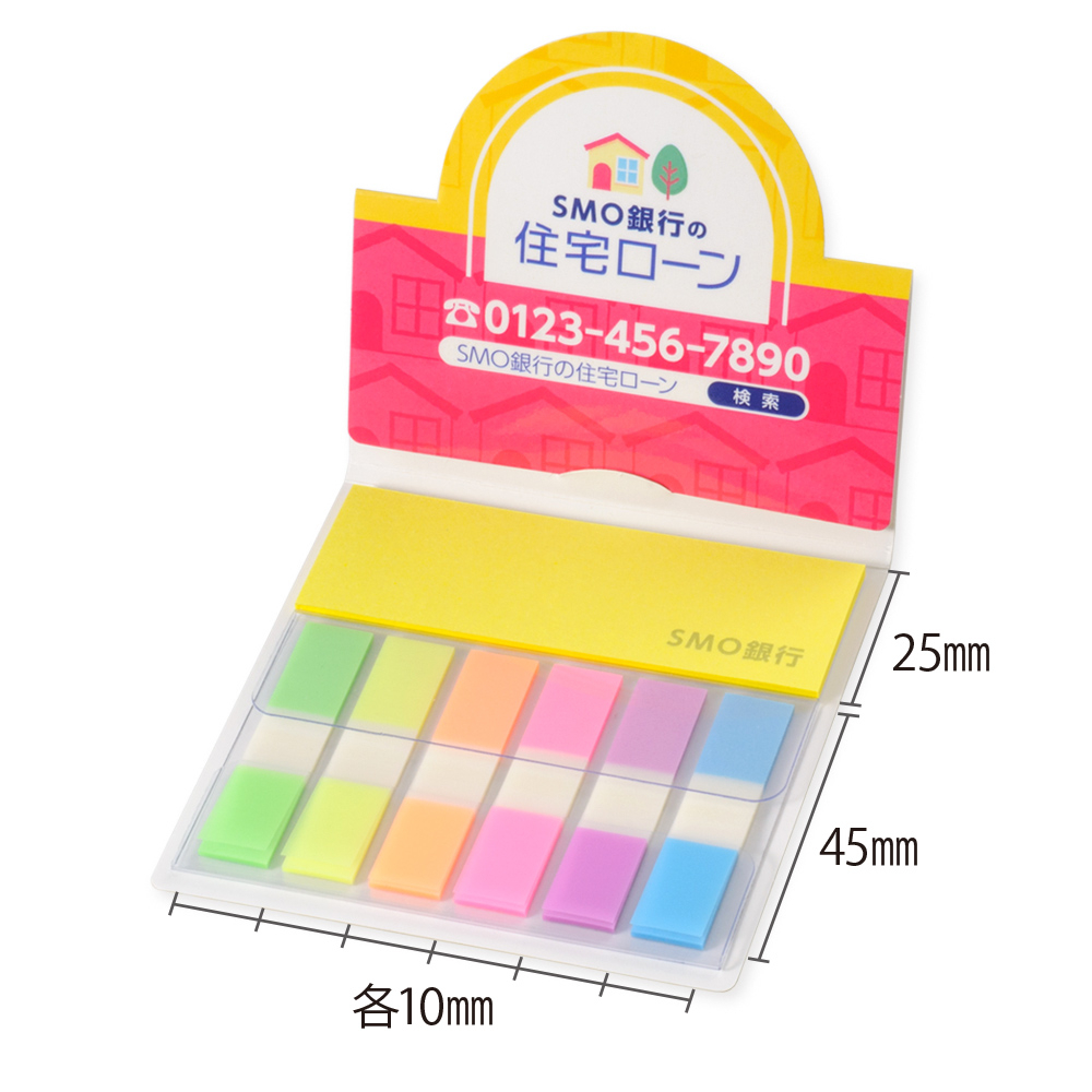 カバー:W80×H80mm、ふせん:W75×H25mm、W10×H45mm×6本 |
