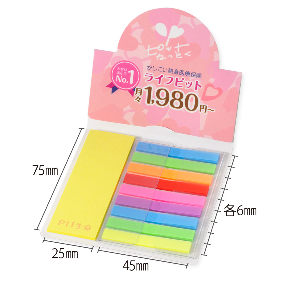 カバー:W80×H80mm、ふせん:W25×H75mm、W45×H6mm×9本 |