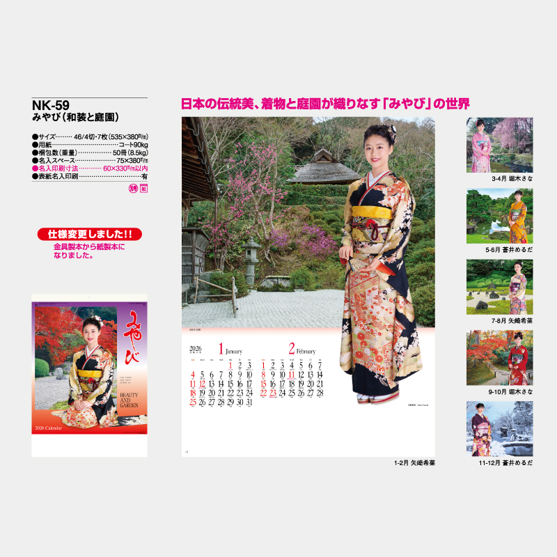 みやび(和装と庭園) 名入れ壁掛けカレンダー |