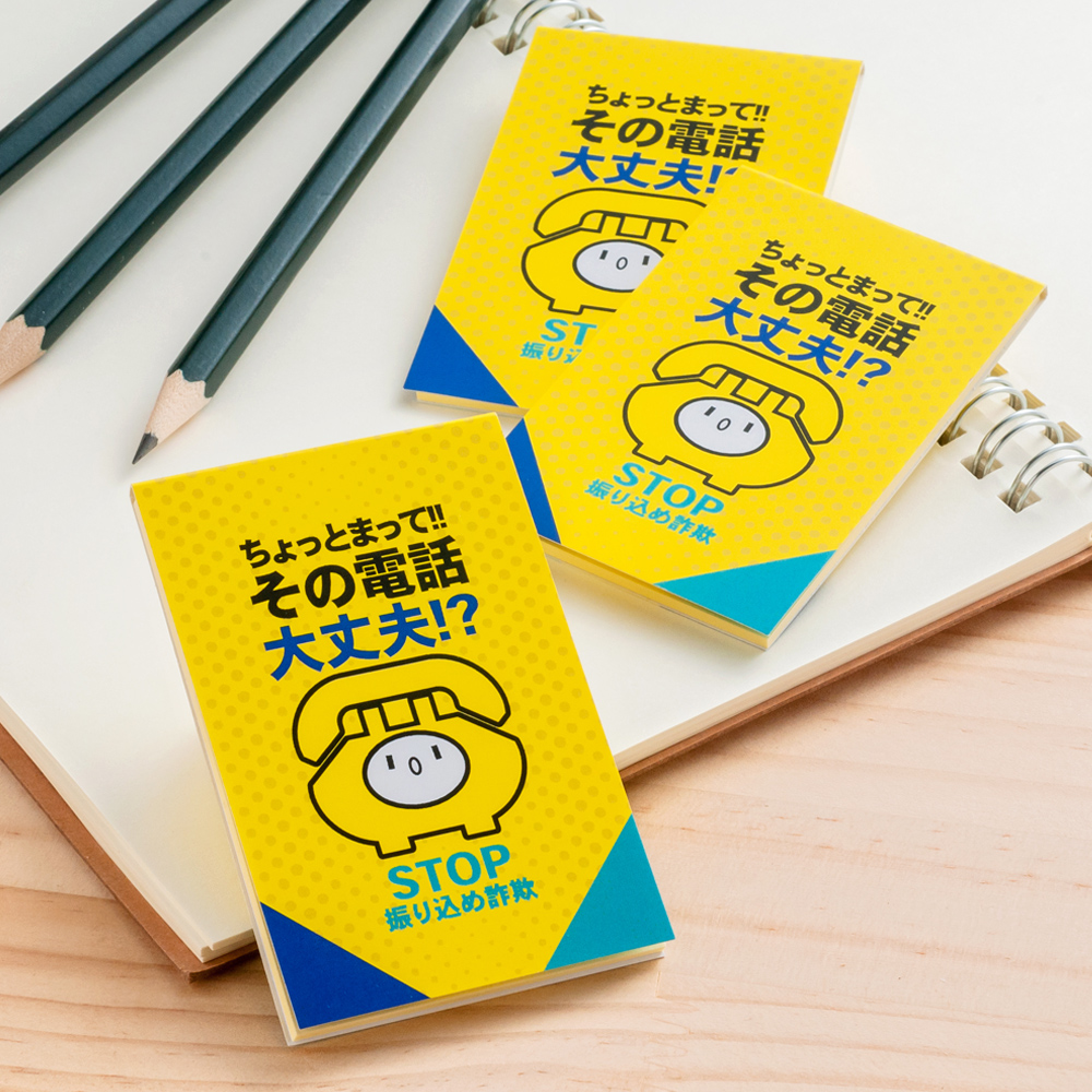 ちょっとしたメモや伝言などに便利な広め幅のふせん。ベーシックなデザインで使いやすく、ノベルティに最適。オリジナルの表紙カバーはデザインの自由度も高く、表面・中面・裏面の3ヵ所にフルカラーでプリントできます。