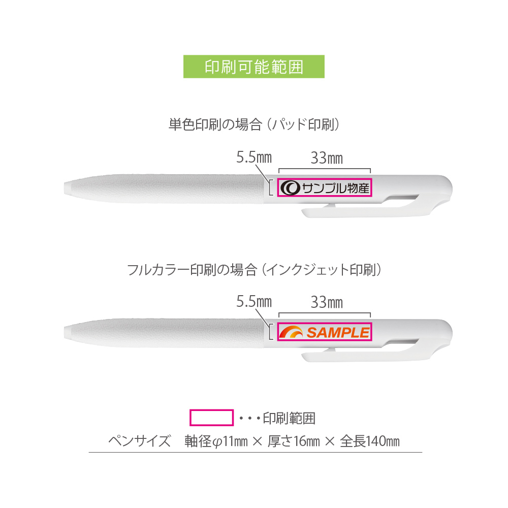 グレイッシュホワイト、ブラック、レッド、カーキ、ベージュ、ブルー、ターコイズブルーから選択可 ※50本単位で軸色の選択が可能です。 |