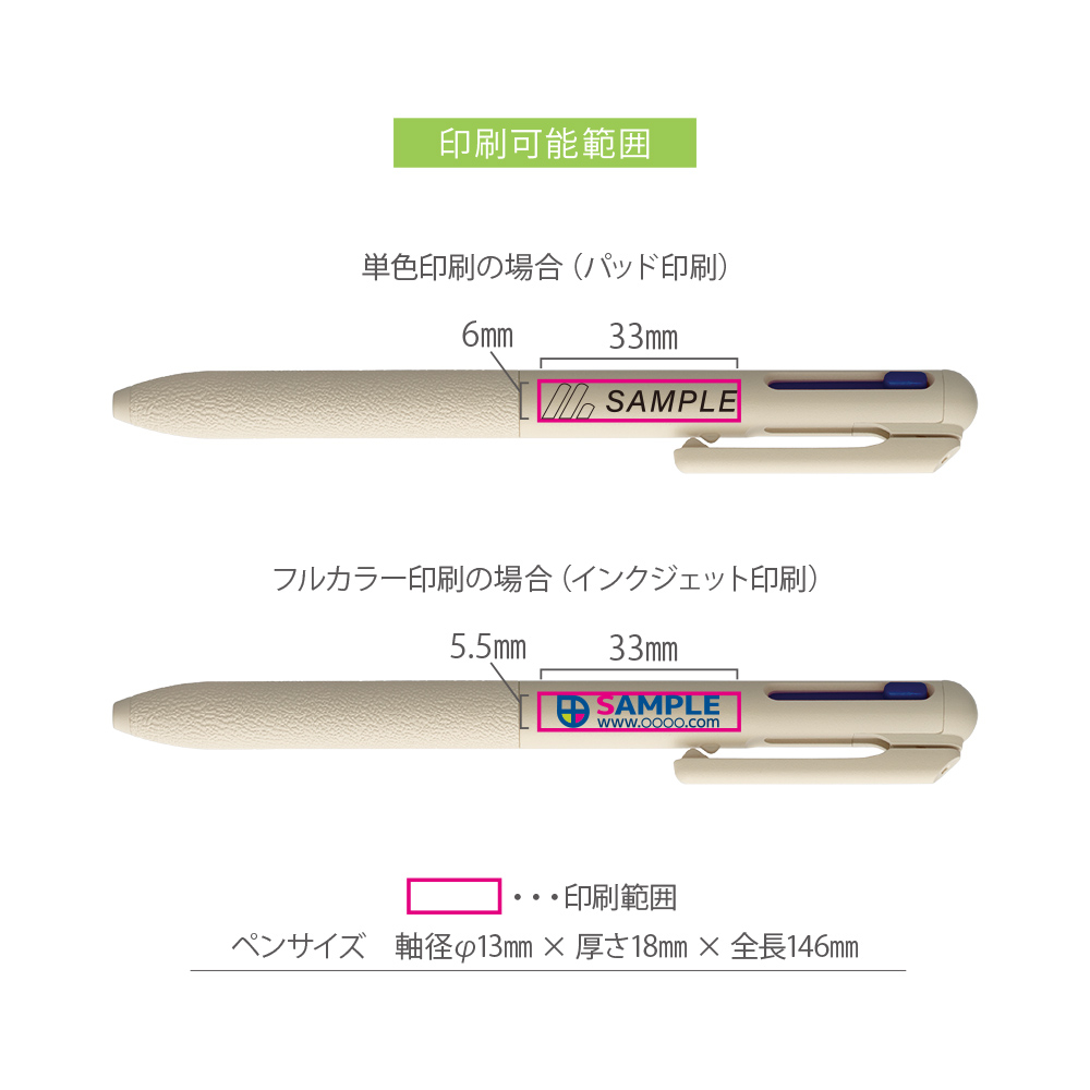 グレイッシュホワイト、ブラック、カーキ、ベージュ、ターコイズブルーから選択可 ※50本単位で軸色の選択が可能です。 |