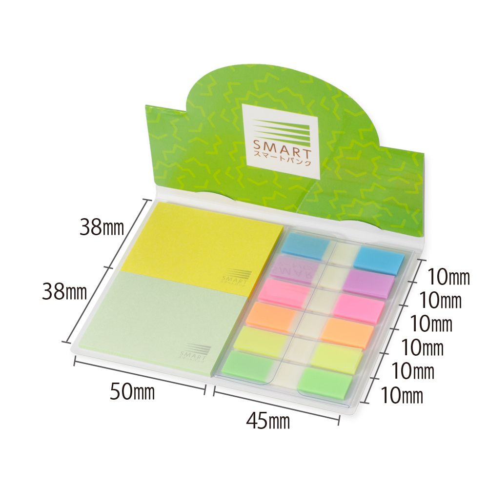 カバー:W105×H80mm、ふせん:W50×H38mm×2個、W45×H10mm×6本  |