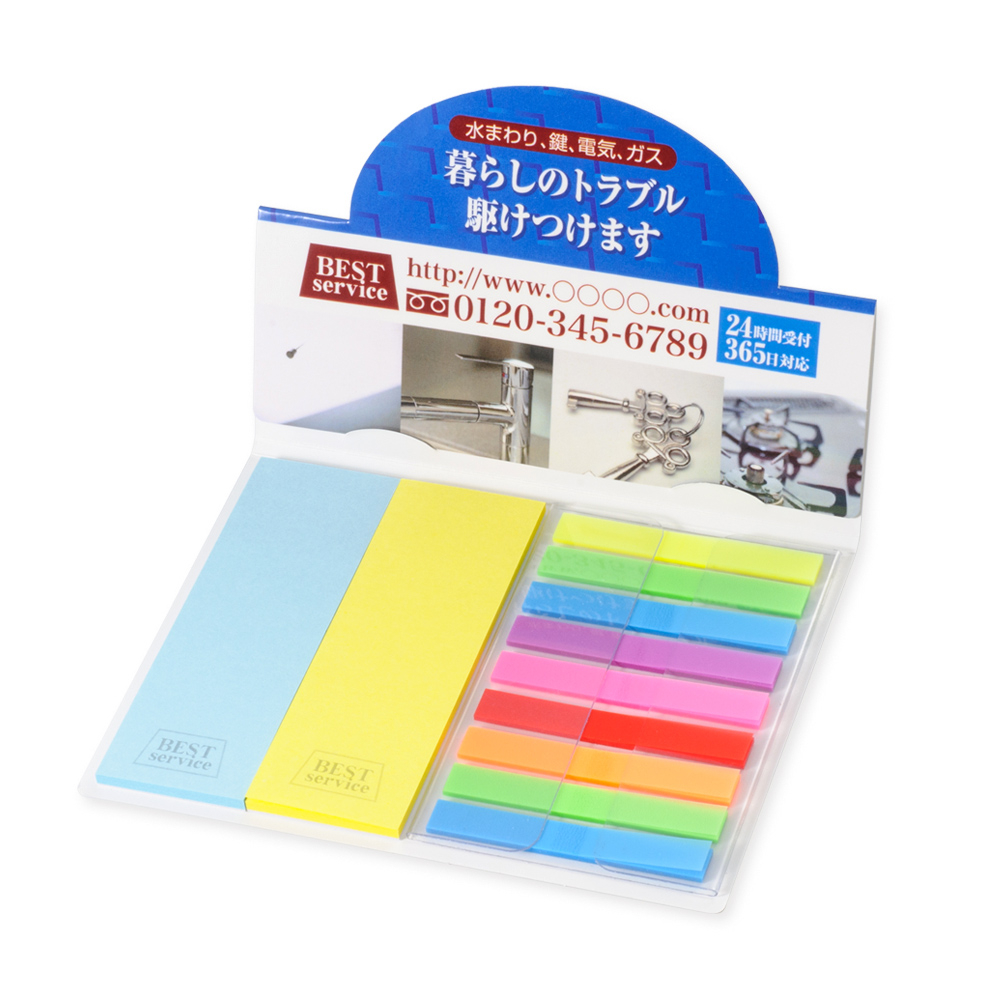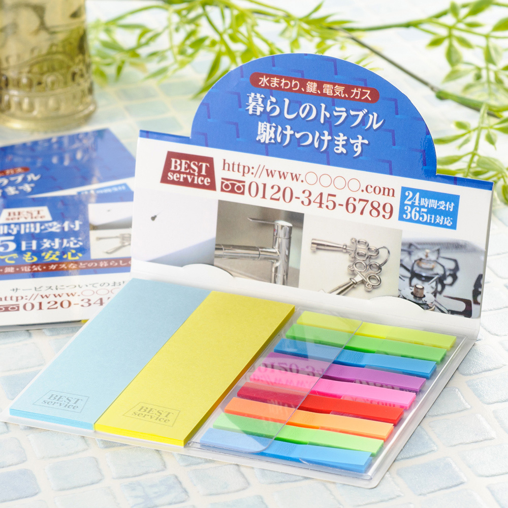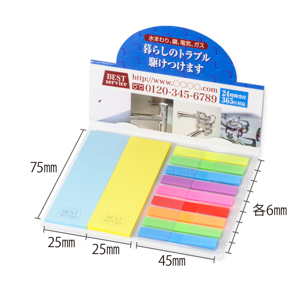 カバー:W105×H80mm、ふせん:W25×H75mm×2本、W45×H6mm×9本  |