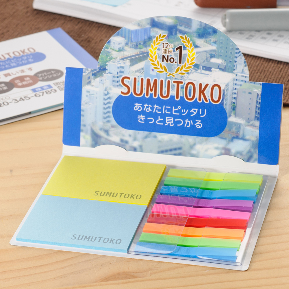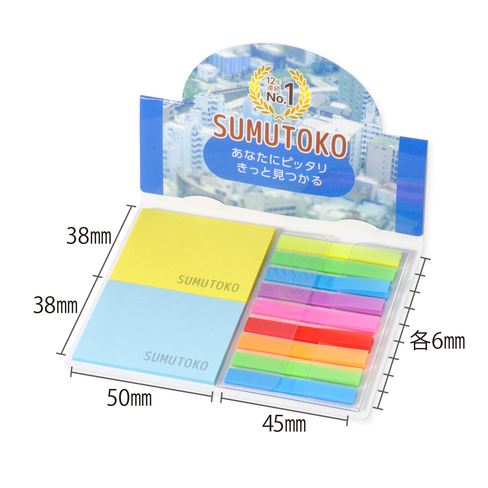 カバー:W105×H80mm、ふせん:W50×H38mm×2個、W45×H6mm×9本  |