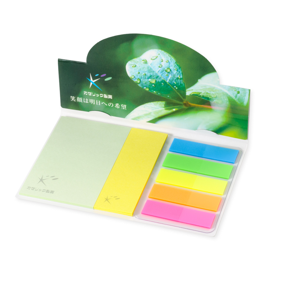 カバー:ホワイトのみ、ふせん:ホワイト、グリーン、イエロー、ブルー、ピンクから選択可、PET5連印刷不可 |