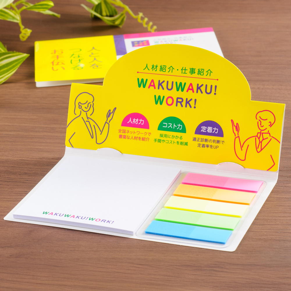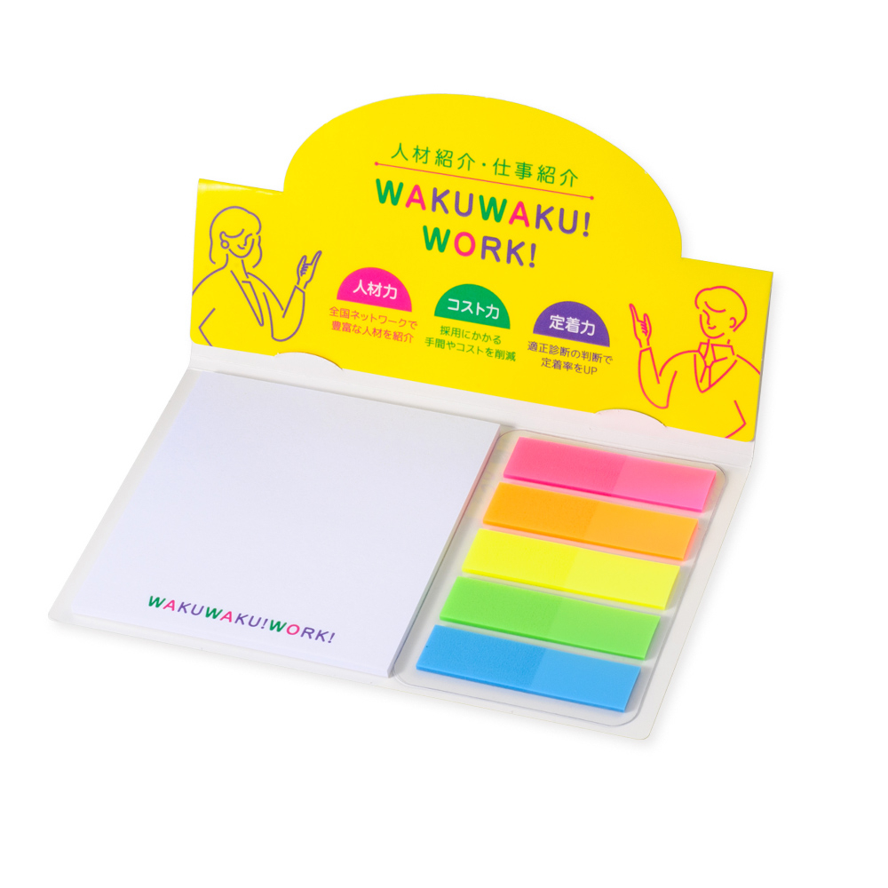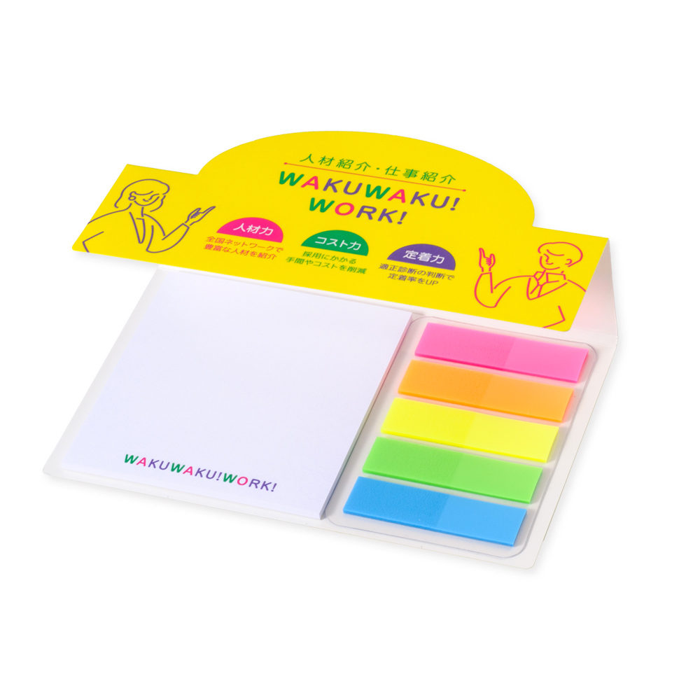 カバー:ホワイトのみ、ふせん:ホワイト、グリーン、イエロー、ブルー、ピンクから選択可、PET5連印刷不可 |