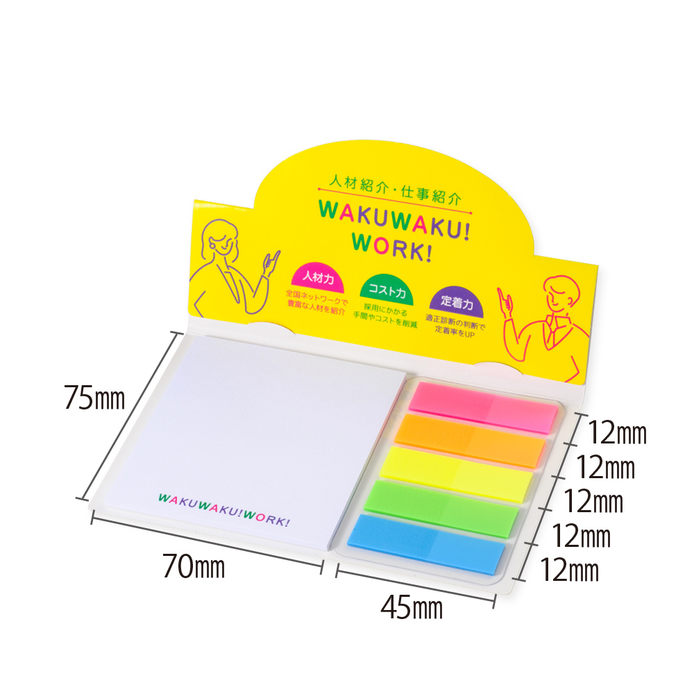 カバー:W130×H80mm、ふせん:W70xH75mm、W45×H12mm×5本 |