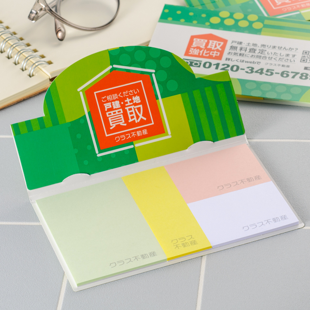 カバー:両面フルカラー印刷、ふせん:片面単色印刷or片面フルカラー印刷 |