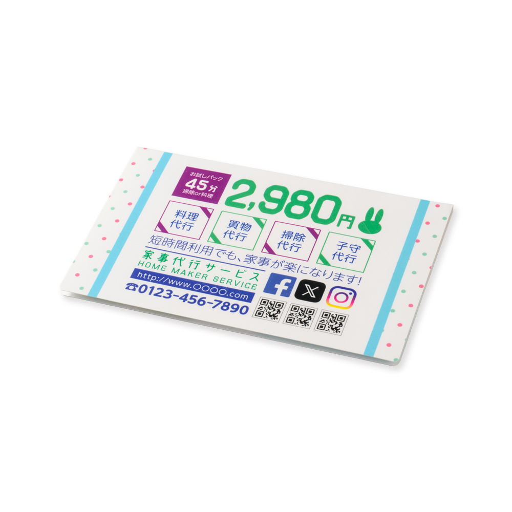 カバー:両面フルカラー印刷、ふせん:片面単色印刷or片面フルカラー印刷 ※PET6連印刷不可 |