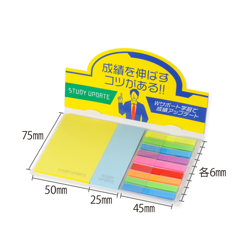 カバー:W130×H80mm、ふせん:W50xH75mm、25xH75mm、W45×H6mm×9本 |