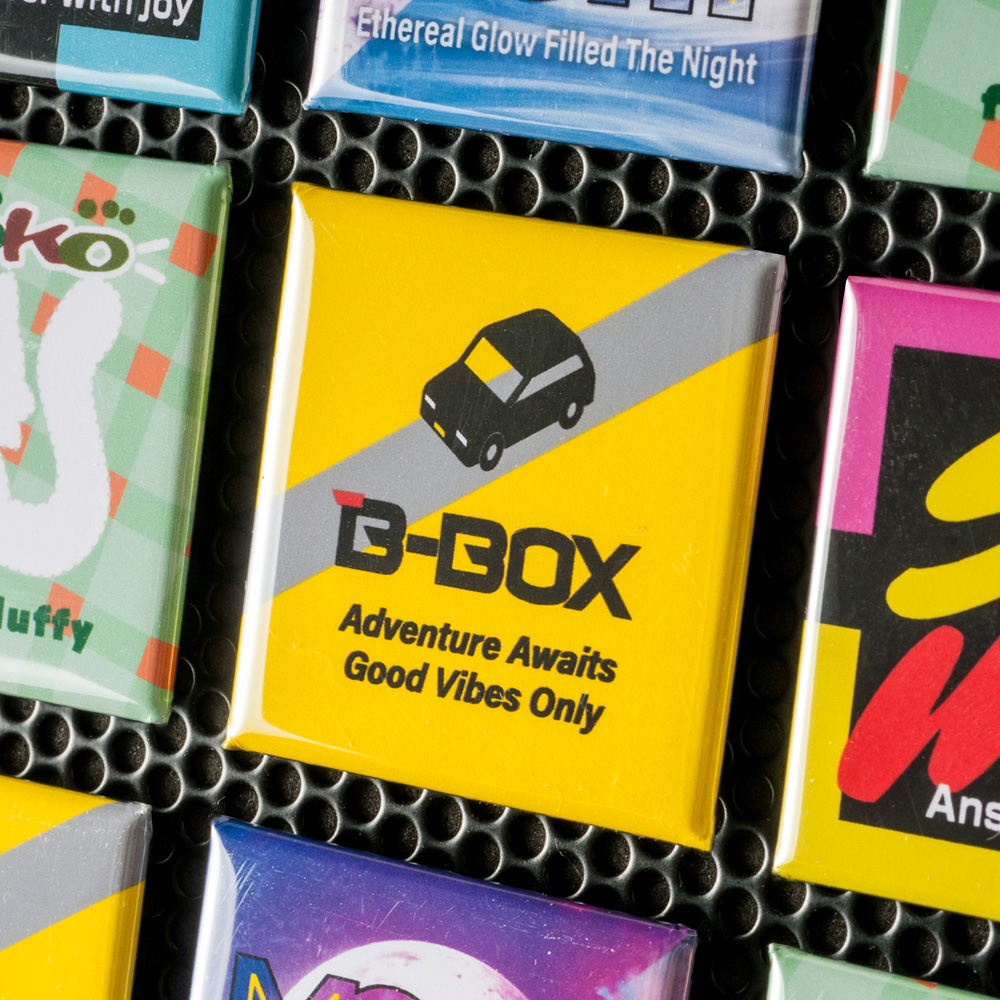 イベントやショップの配布物にも向いているため、通常のバッジタイプのほか、実用性の高いマグネットタイプもご用意しました。通常のバッジタイプは裏面が安全ピン仕様で、服や帽子、バッグなどにつけやすく、用途に合わせてサイズや形状をお選びいただけます。マグネットタイプも同様の形状とサイズ展開で、ホワイトボードやキッチンパネルで活躍してくれます。
