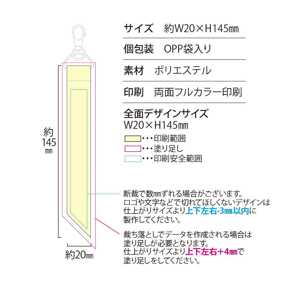 ブラジルの幸運リボン「ボンフィン」をモチーフにした人気のオリジナルキーホルダーです。リボン部分にロゴやデザインをオリジナル印刷でき、イベントや展示会、ショップの販促ノベルティとして高い訴求効果を発揮します。小ロットから大ロットまで対応可能で、企業のPRグッズやブランドプロモーション、アーティストグッズ、推し活アイテムにもおすすめ。サイズは3種類あり、用途に合わせて選択可能です。軽量で持ち歩きやすく、バッグや鍵に付けるだけでトレンド感を演出できるオリジナルボンフィンキーホルダーです。