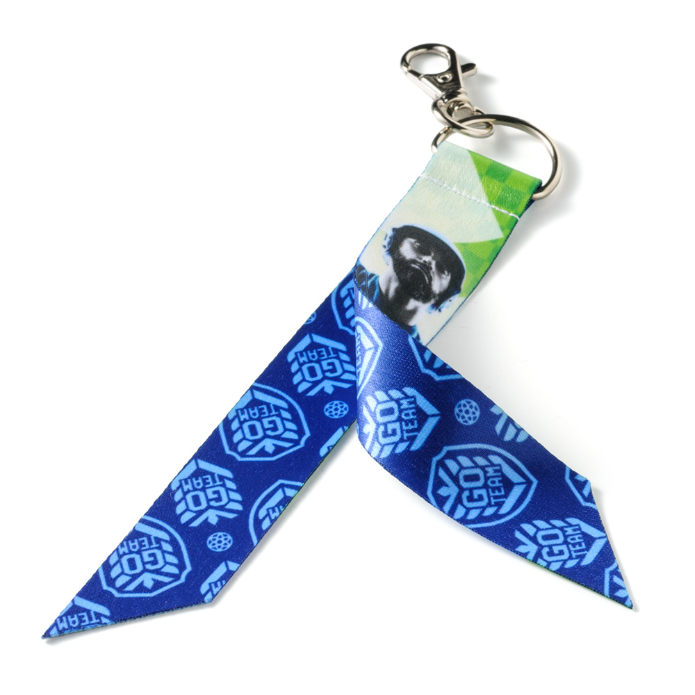 迫力ある存在感でブランド訴求に最適!ボンフィンリボンを大胆にアレンジした、印象に残るオリジナルキーホルダー(短納期対応商品)