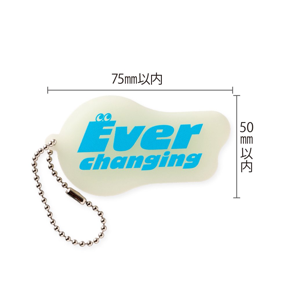 薄黄緑の蓄光アクリル素材(厚さ3mm)が暗闇でグリーンに発光するキーホルダー。オリジナル輪郭カット対応で、キャラクターやロゴなど自在にデザイン可能。表面は片面フルカラー+白押さえのUVインクジェット印刷。個別OPP袋包装、ボールチェーン付きで扱いやすさも◎。小ロット・短納期対応で販促やイベントにも適した一品です。