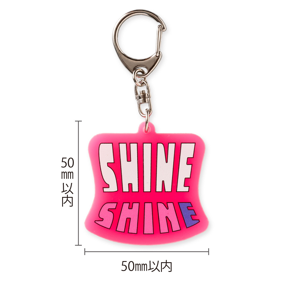 暗闇でも映える蓄光オレンジ素材×ナスカン仕様。自由形状カットでブランドロゴやキャラクターを鮮やかに表現するオリジナルアクリルキーホルダー(短納期対応商品)