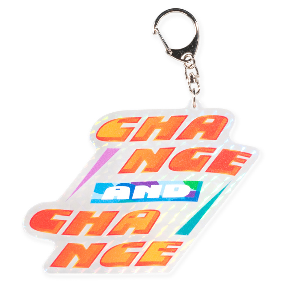 ナスカン仕様で取り付け自由自在。ホログラムアクリルが光を受けて虹色にきらめくオリジナル形状アクリルキーホルダー(短納期対応商品)