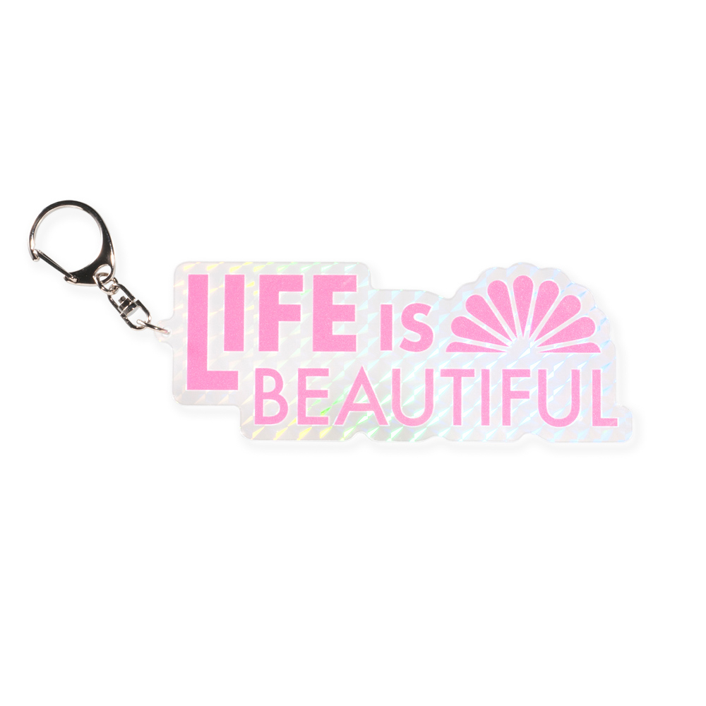 ナスカン仕様で取り付け自由自在。ホログラムアクリルが光を受けて虹色にきらめくオリジナル形状アクリルキーホルダー(短納期対応商品)