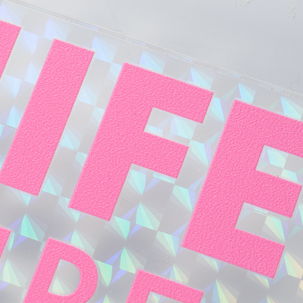 ホログラムアクリル素材を使用し、光の角度で虹色の輝きを放つナスカン仕様のオリジナルアクリルキーホルダーです。自由輪郭カットにより、ロゴやキャラクターなどあらゆるデザインを自在に形状化できます。片面フルカラー印刷+白押さえにより鮮やかな表現を実現し、バッグや鍵、ポーチへの装着もスムーズ。配布用ノベルティから物販用グッズまで、視覚的インパクトと利便性を兼ね備えたアイテムです。