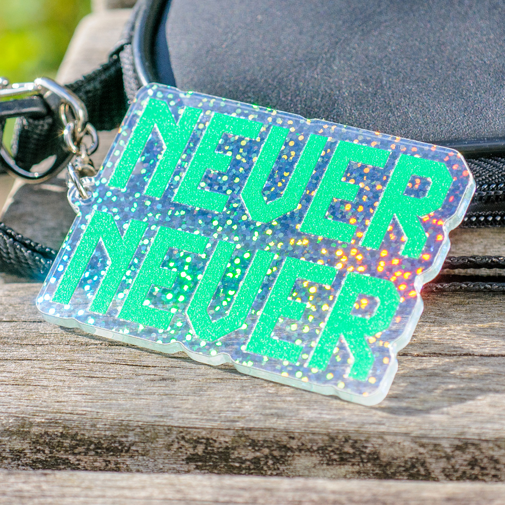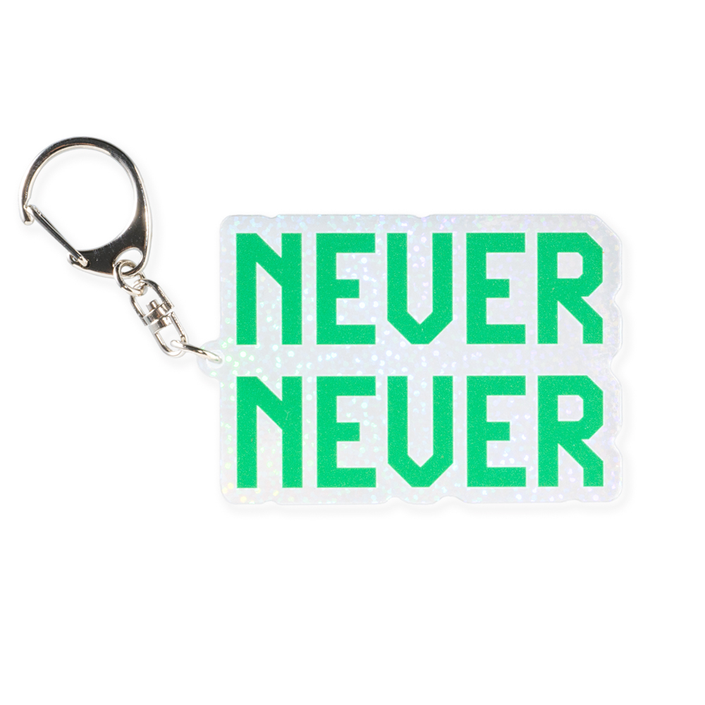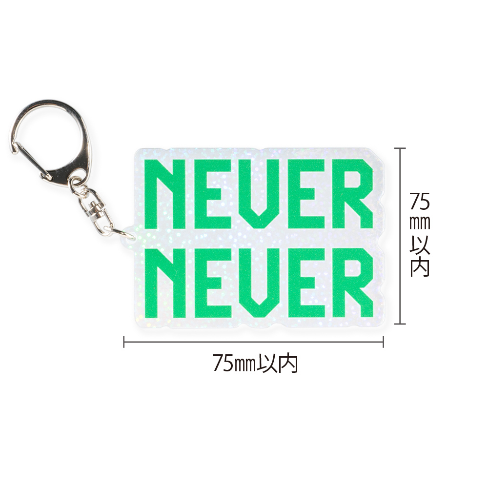 ホログラム/模様入りアクリル素材を採用し、光の変化で虹色に輝くナスカン仕様のオリジナルアクリルキーホルダーです。自由輪郭カットにより企業ロゴ・キャラクター・ブランドアイコンを自在に形状化でき、片面フルカラー印刷+白押さえで高発色を実現。バッグや鍵、リュックなどにナスカンで簡単に取り付けられ、イベント配布・物販・ノベルティ用途に最適な仕様となっています。