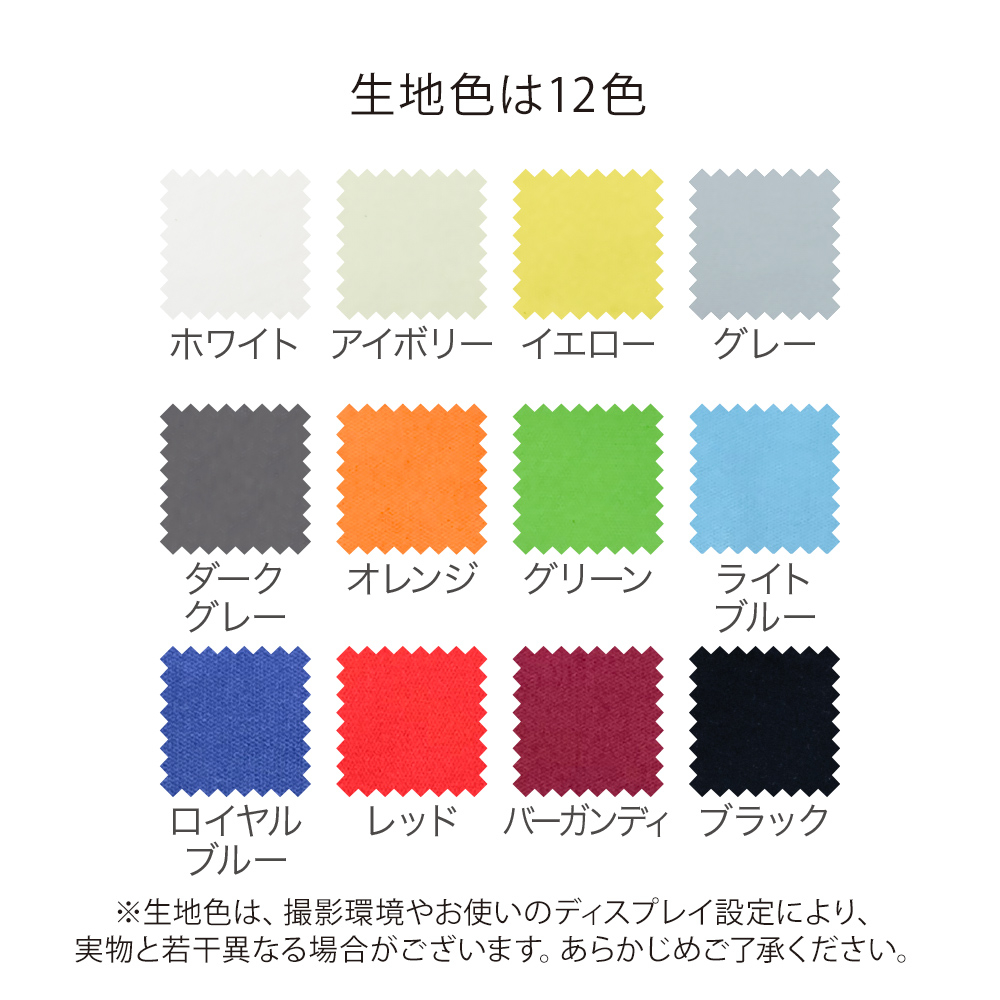 生地色:ホワイト、ブラック、レッド、グリーン、イエロー、ロイヤルブルー、ライトブルー、バーガンディ、アイボリー、オレンジ、グレー、ダークグレーから選択可 |