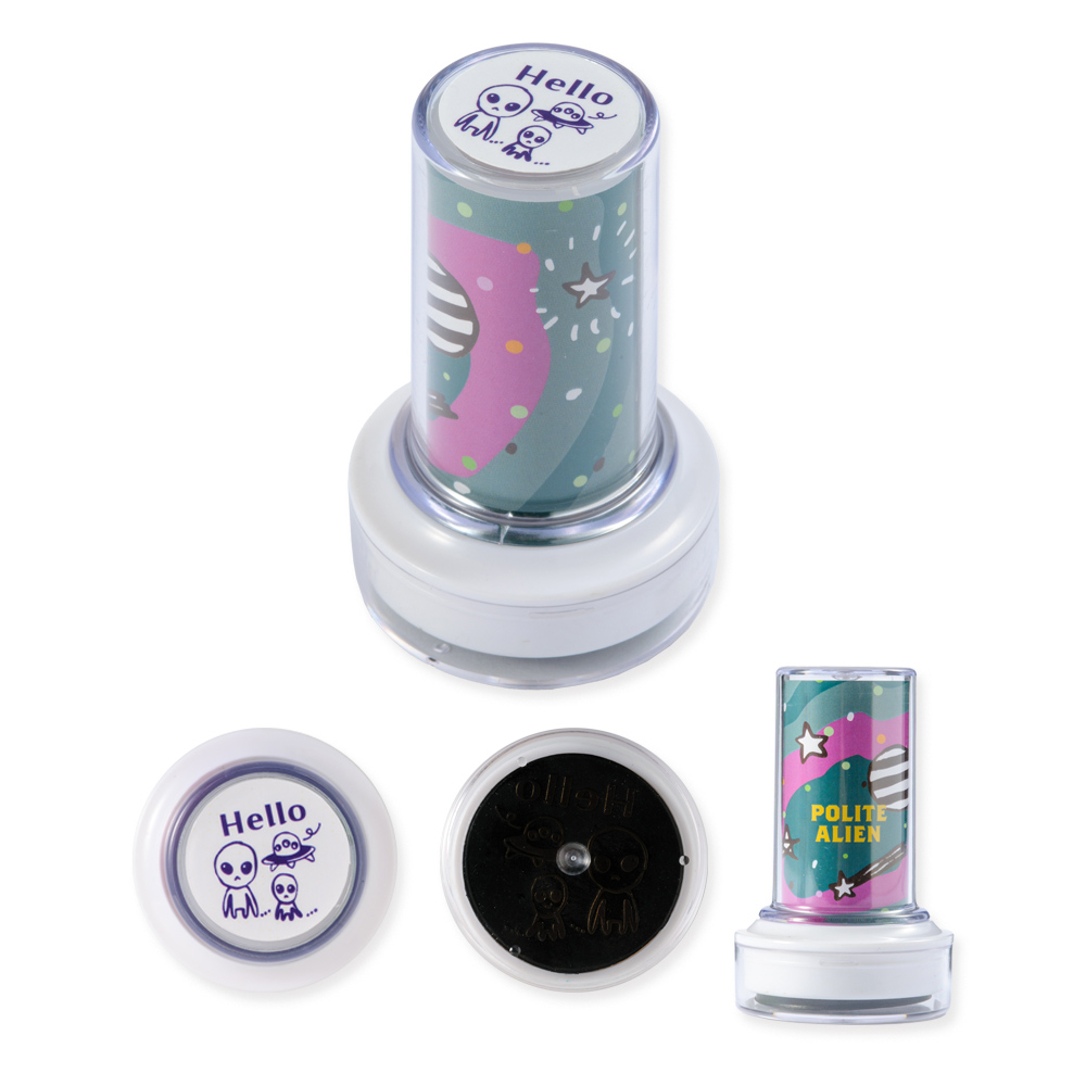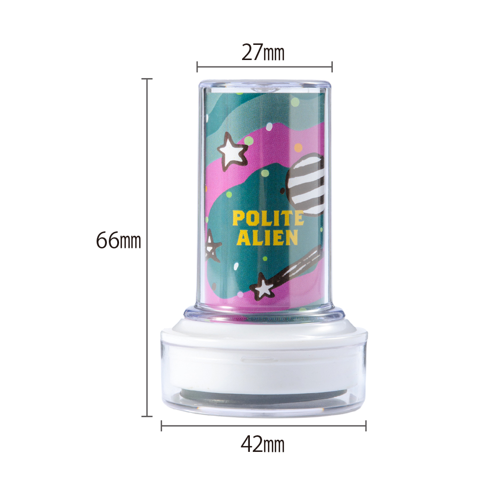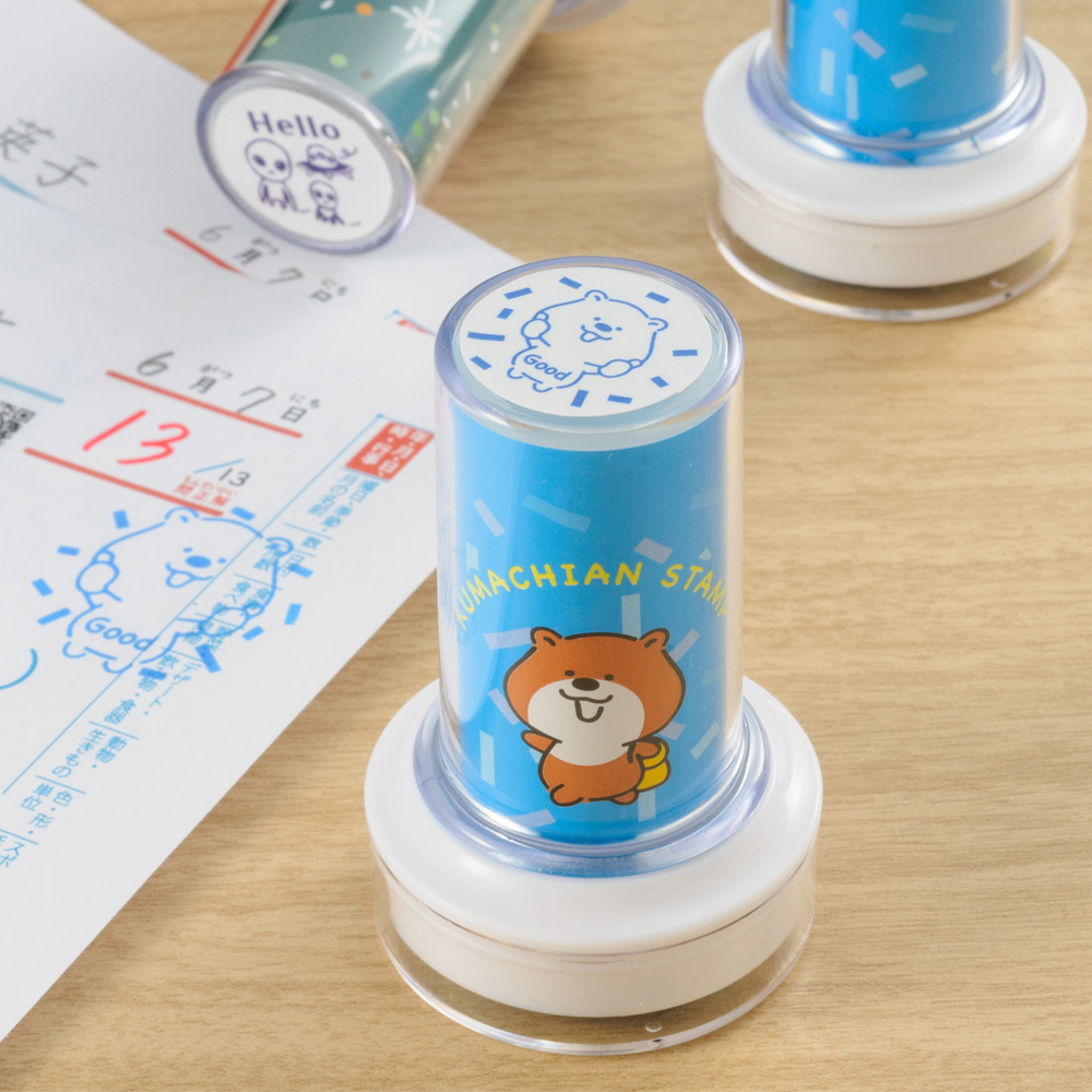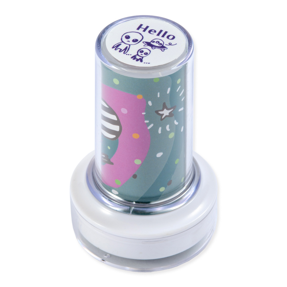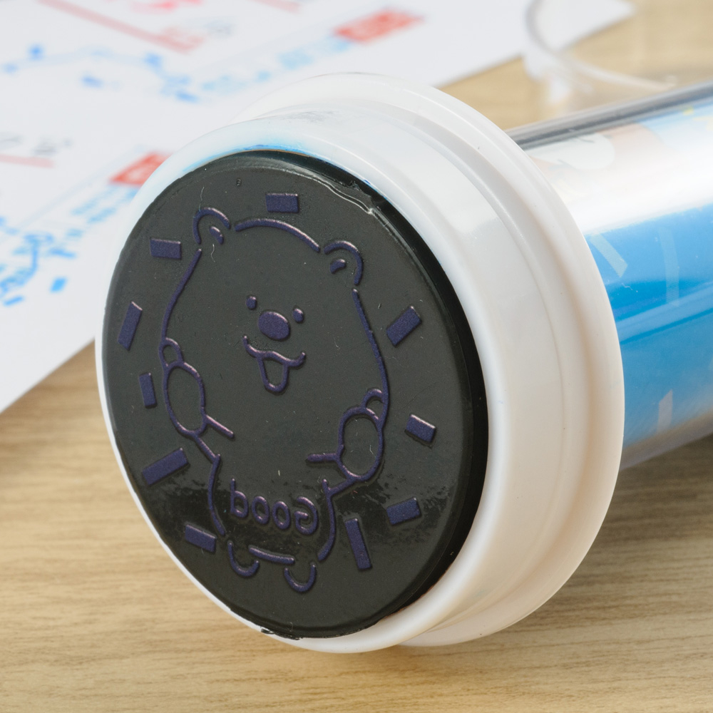 スタンプ台不要でポンポン捺印できる浸透印スタンプ。円柱クリア素材のかわいいスタンプ。天面シール、側面ラベルはフルカラー印刷可能で企業ノベルティ・イベント物販・ショップグッズに最適なオリジナル浸透印です。