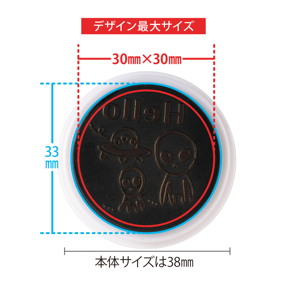 浸透印インク:ブラック、レッド、グリーン、ブルー、ブラウン、パープル、ピンク、オレンジから選択可、本体天面シール・側面ラベル:片面フルカラー印刷 |