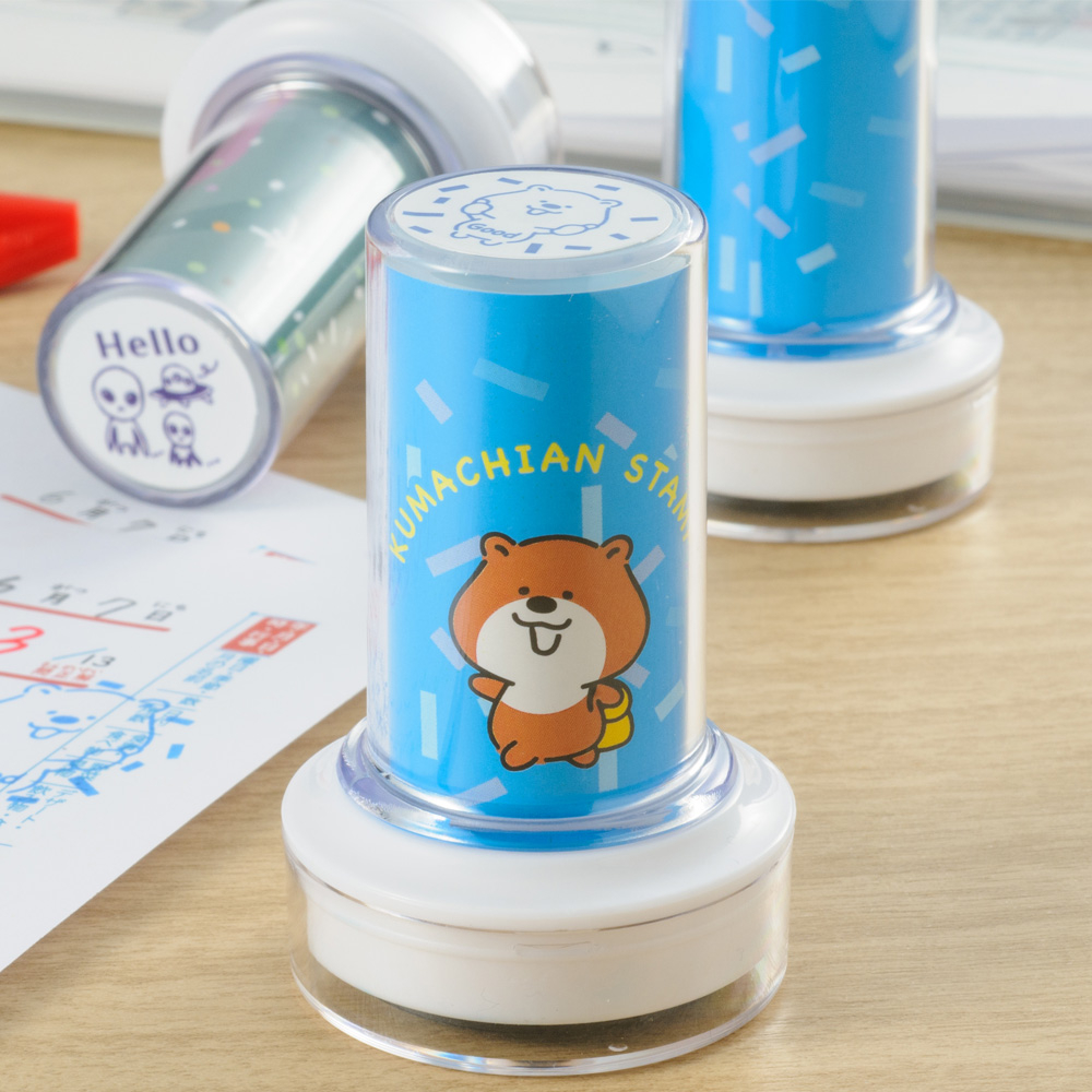 スタンプ台不要&8色インク対応!クリア円柱で自由にデザインできるオリジナル浸透印スタンプ(短納期対応商品)