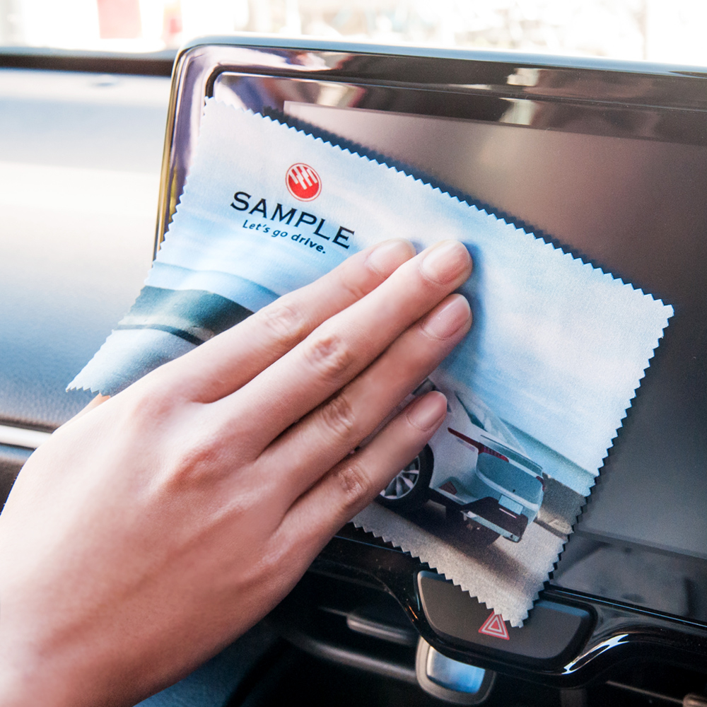 ワイドサイズで拭き取り力抜群。鮮やかに印刷できる大判マイクロファイバークロス(短納期対応商品)